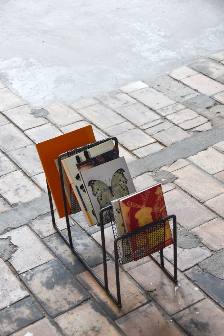 Deze stoel is vervaardigd uit restplaten van Haemers NV, producent van geperste sluitringen. De frames zijn gemaakt uit resten betonijzer van Megaton, deel van Willy Naessens Group.